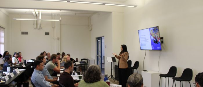 Hosted at the new Arts District Liberty Station space, the day began with a welcome from Lisa Johnson, President and CEO of Arts District Liberty Station, who introduced the cohort to the organization’s work and vision for cultivating creativity, connection, and community in San Diego. Arts District Liberty Station continues to serve as a hub for artists, cultural organizations, and community engagement in a place layered with history and possibility.