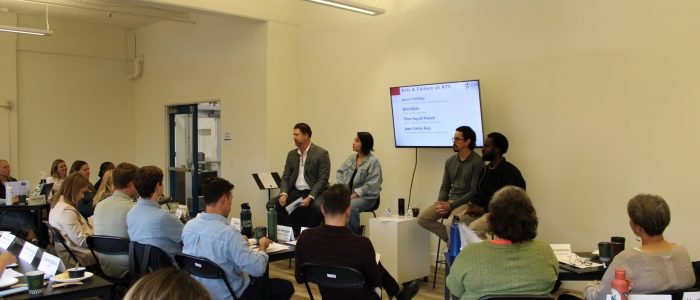 From there, the cohort moved into an arts and culture panel moderated by James Haliday, VP & Chief Advancement Officer for Arts District Liberty Station, and featured Bilal Bikile, Founder & Curator, Deixis Gallery; Thao Huynh French, Muralist and Educator, Co-Founder of Mindful Murals; and Juan Carlos Ruiz, Project Manager, obrARCHITECTURE, a Lionakis Company.Together, the panel reinforced that arts and culture are not extras in a thriving region, they are central to how people experience belonging, expression, and place.